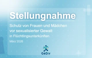 Stellungnahme des GEDIV – Zum Schutz von Frauen und Mädchen vor sexualisierter Gewalt in Flüchtlingsunterkünften Aktuelles, Presse Statements, Statements Stellungnahme des GEDIV – Zum Schutz von Frauen und Mädchen vor sexualisierter Gewalt in Flüchtlingsunterkünften admin2026-03-12T20:19:08+01:0012.03.2026|